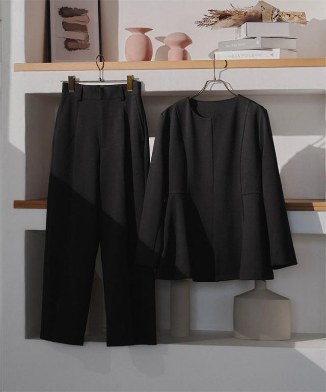 低身長さん向けシリーズ【プチレタス】から、デイリーからフォーマルまで着回し力抜群のペプラムジャケットセットアップが登場しました。女性らしいシルエットのペプラムジャケットと、スタイリッシュなテーパードパンツの組み合わせは上品な華やかさを演出してくれます。【素材・サイズ感】サラッとした肉厚な生地感。ジャケットは裏地付きできちんと見えはもちろん、ペプラムシルエットで体型カバーも叶います。フロントホック仕様で上品さをプラスし、すっきりした見た目に。シワになりにくく、ご自宅でお洗濯いただけるイージーケアなのも嬉しいポイント◎。※キャンセル/変更不可※お届けまでの日程について