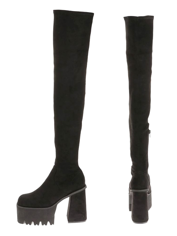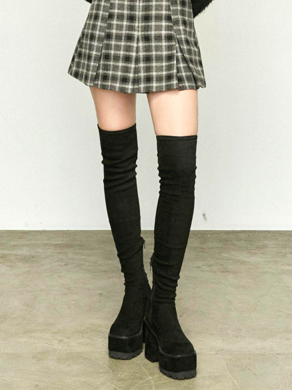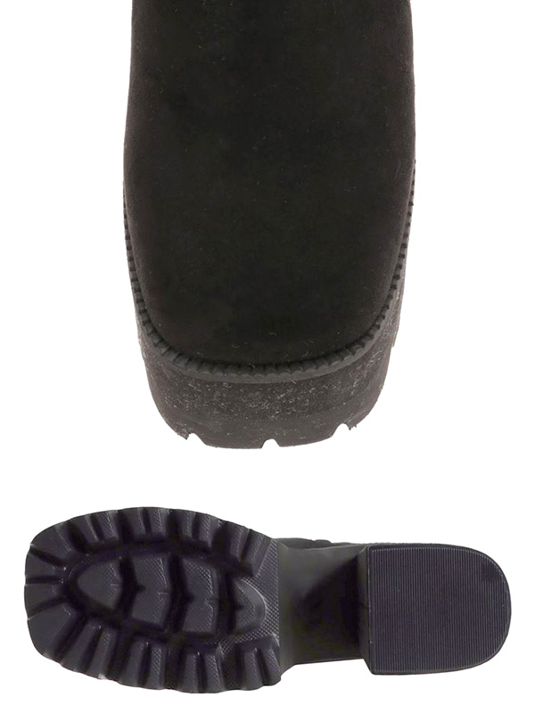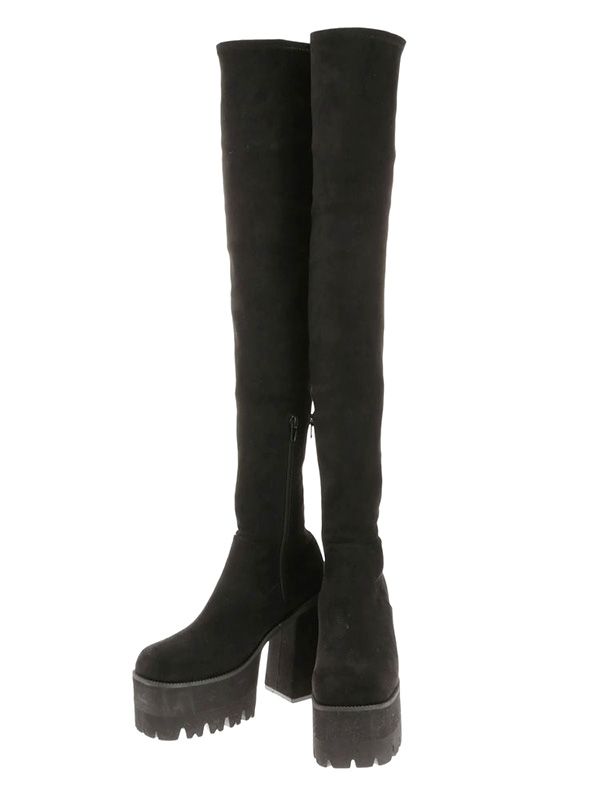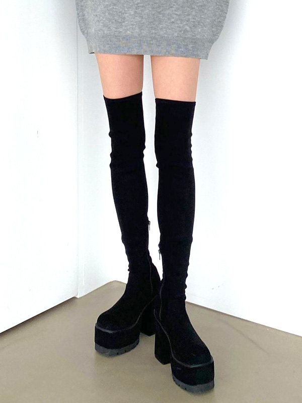 EMODA エモダ 厚底 ブーツ スクエア フィット ロング ブーツ ニーハイブーツ ロングブーツ スクエアトゥ タンクソール ストレッチスエード 042551830901