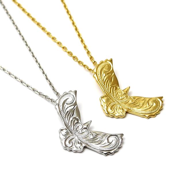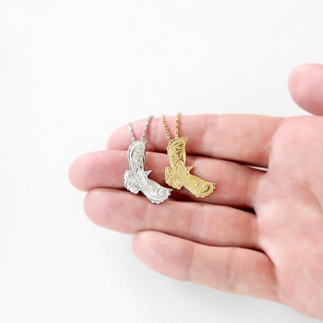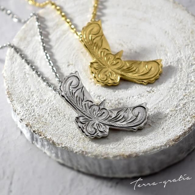 イーグルモチーフに繊細なハワイアン柄を施したペアネックレス。