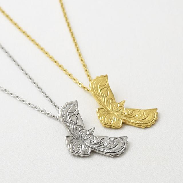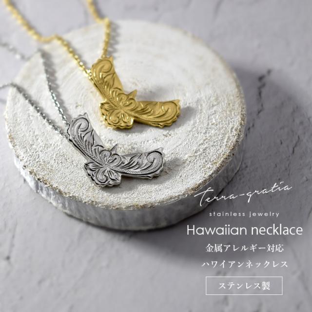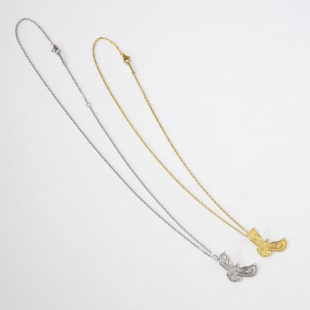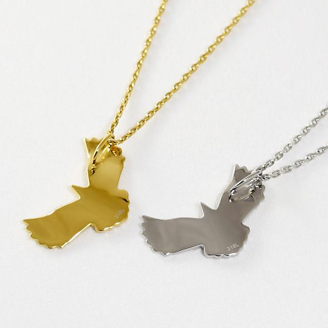 イーグルモチーフに繊細なハワイアン柄を施したペアネックレス。 男性用はスティールシルバーカラー、女性用はイエローゴールドカラーの仕様です。