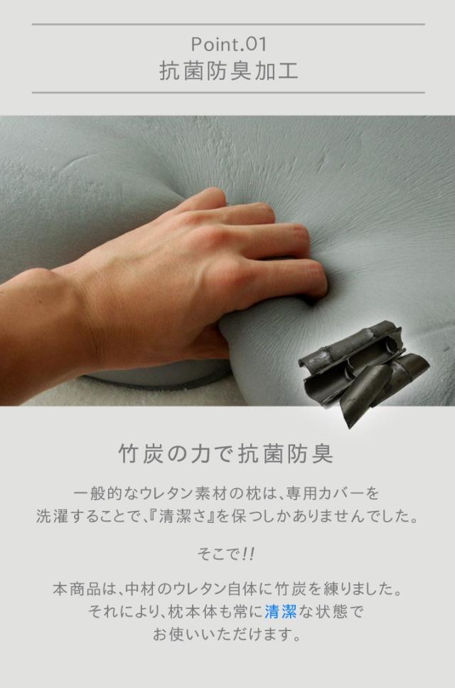 | ■中材に竹炭の成分を混ぜ合わせた抗菌・防臭機能付きの低反発ウレタン枕。 ■「モールド製法」と呼ばれる方法で製造しました。中材の密度等のムラを防止し安定した品質を維持できます。 ■ゆっくり沈み込み、やわらかい寝心地が特徴の低反発枕です。 |