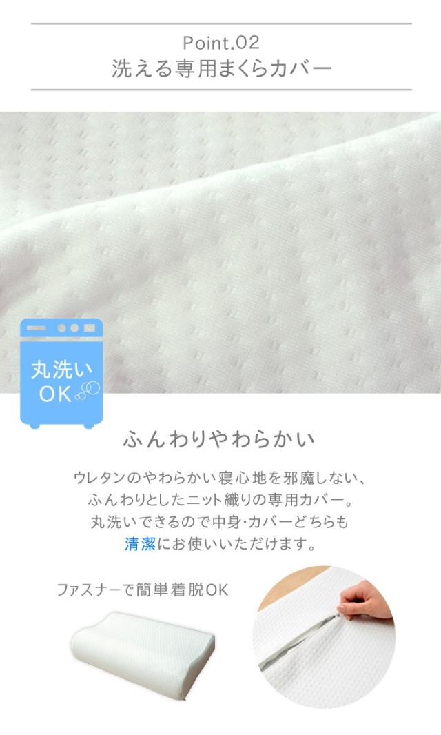 | 枕本体の洗濯はできません。 洗濯をする場合はカバーを取り外し、カバーのみお洗いください。 |
