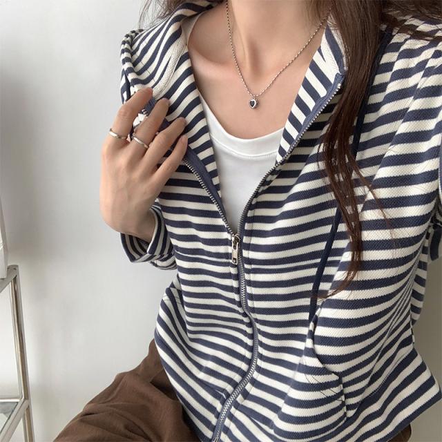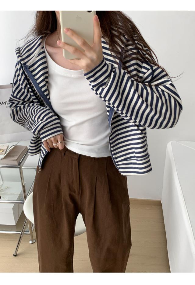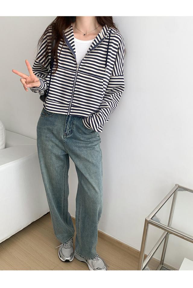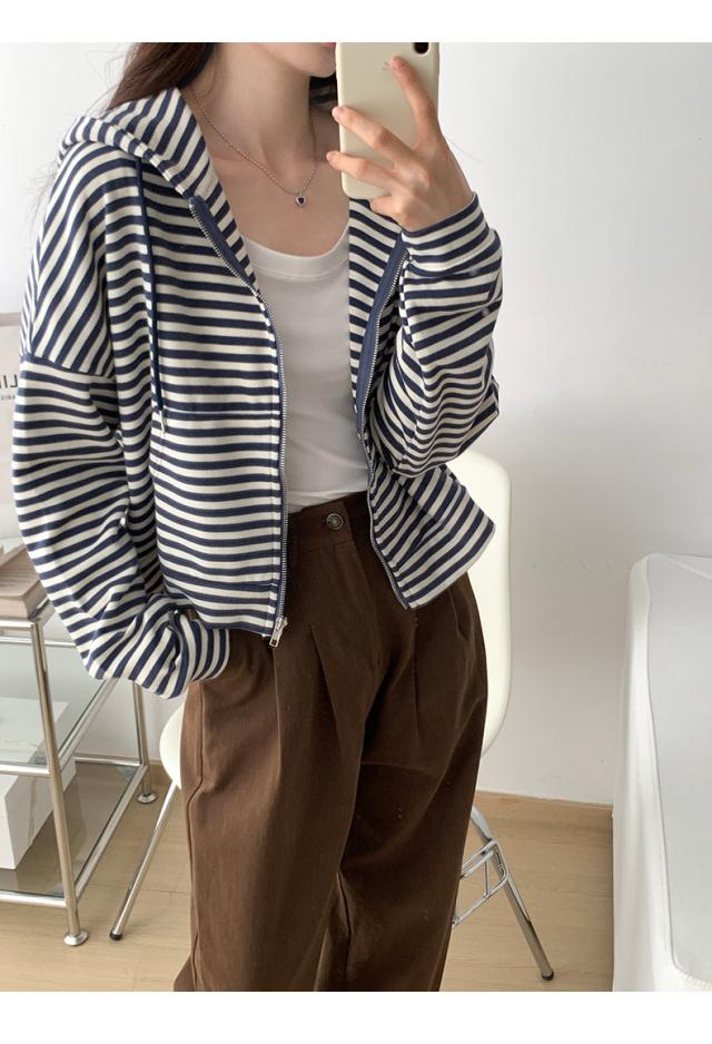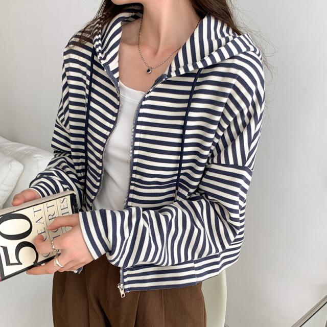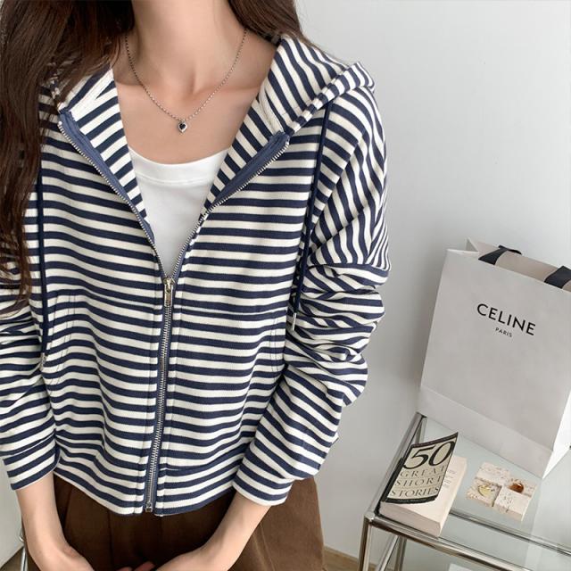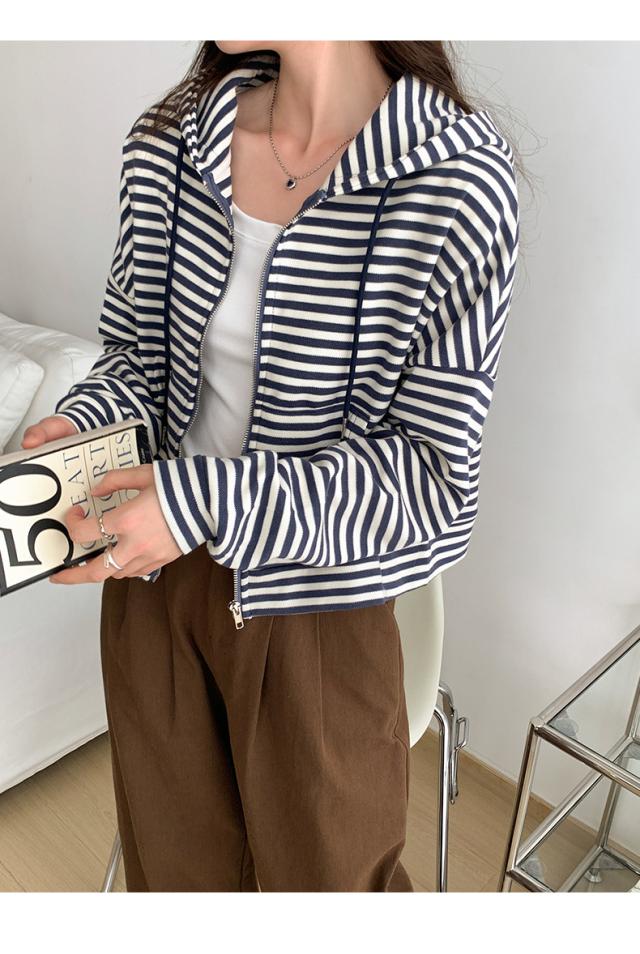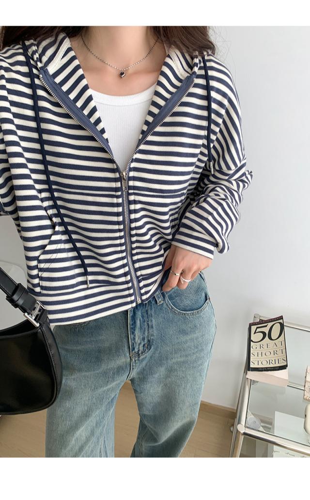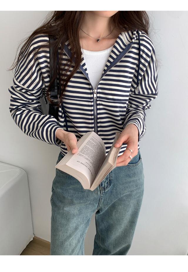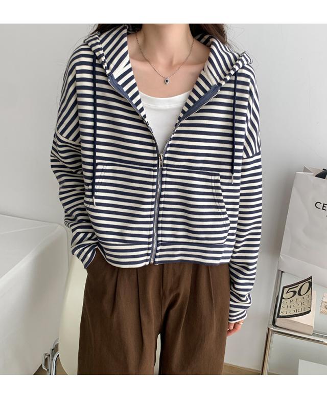 ジップパーカー パーカー ボーダー柄 アウター ジップアップ ゆったり フード付き 春秋 レディース お洒落 スポーツ カジュアル ゆったり スポーツ