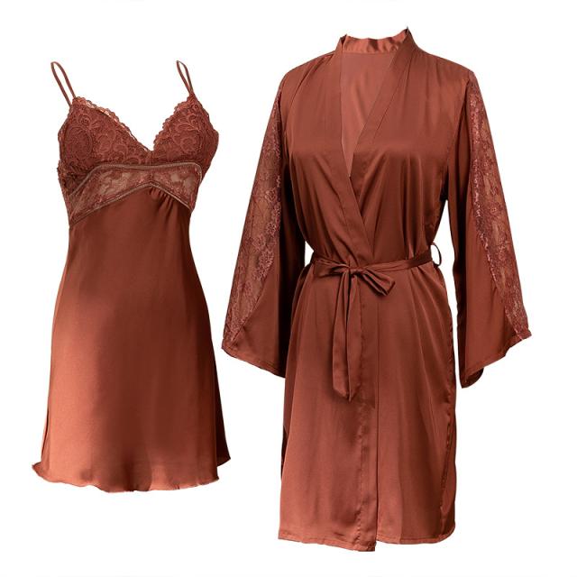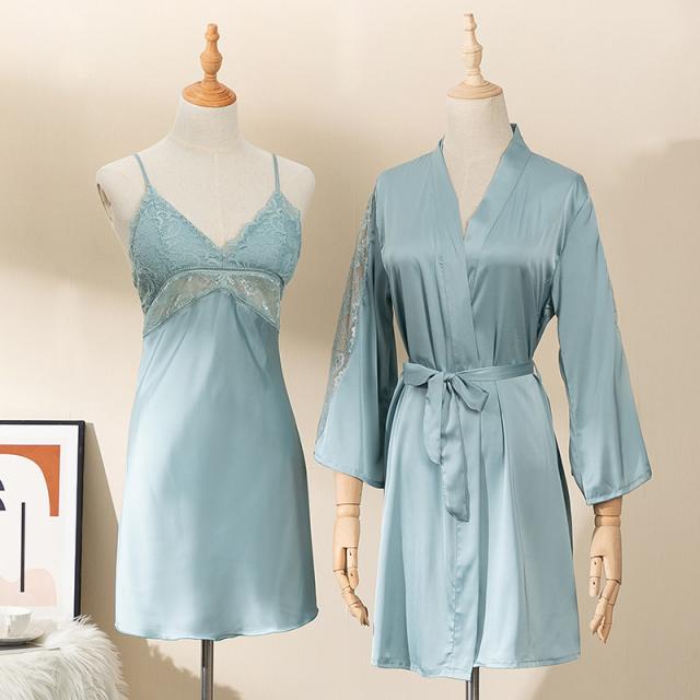 パジャマ サテン セクシー 寝巻き 部屋着 ルームウェア レディース 2点セット 可愛い ランジェリー レース カップ付き 春秋 柔らかい プレゼント