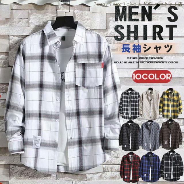 シャツ メンズ 長袖シャツ チェックシャツ 開襟シャツ ボタンダウン カジュアルシャツ 秋服 トップス シャツジャケット 細身 トップス 大きいサイズ 送料無料