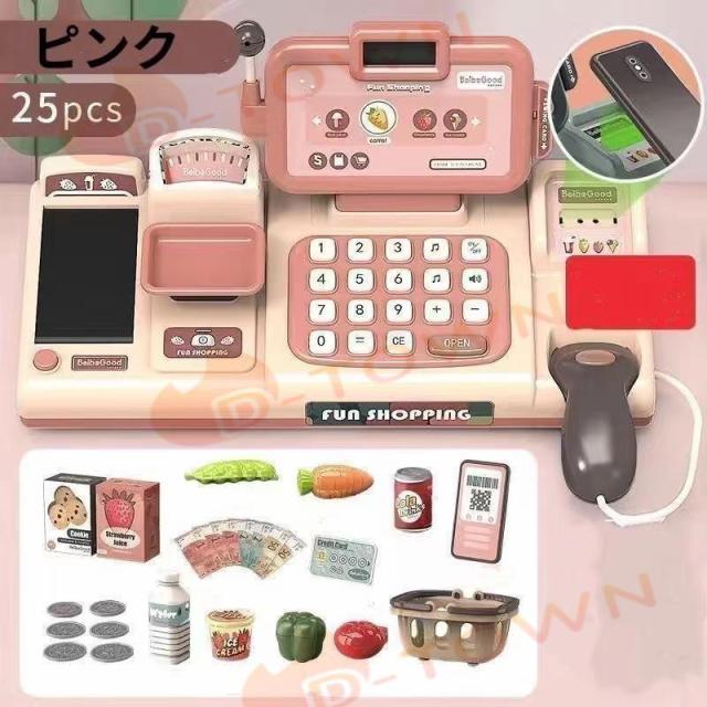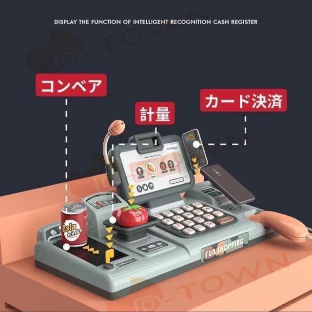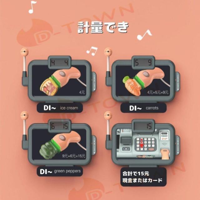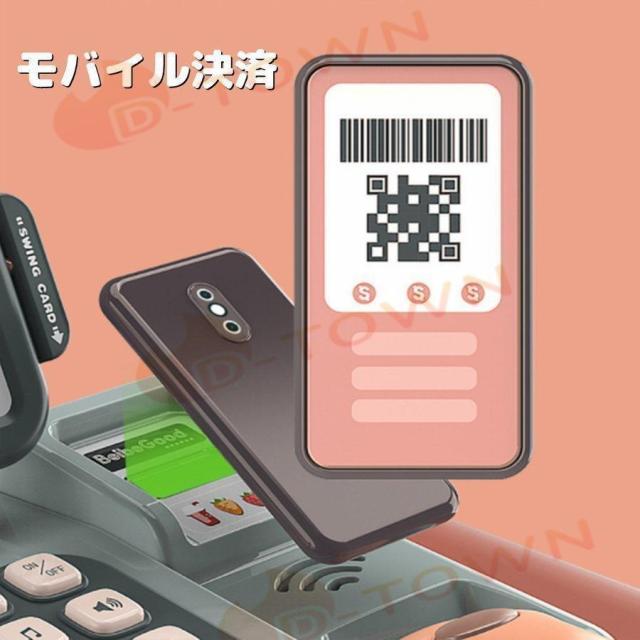 レジ おもちゃ おままごと お店屋さんごっこ 電卓 レジスター お買い物 ショップ店員 子供 室内 計算 キッズ 知育玩具 スキャンコード モバイル決済 計量
