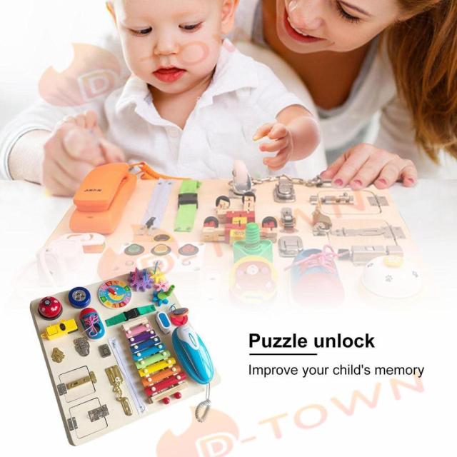 知育玩具 木のおもちゃ、幼児ビジーボードおもちゃ、モンテッソーリおもちゃ感覚フィジェットボードおもちゃ、早期教育給付インテリジェンス教材、感覚ボード旅