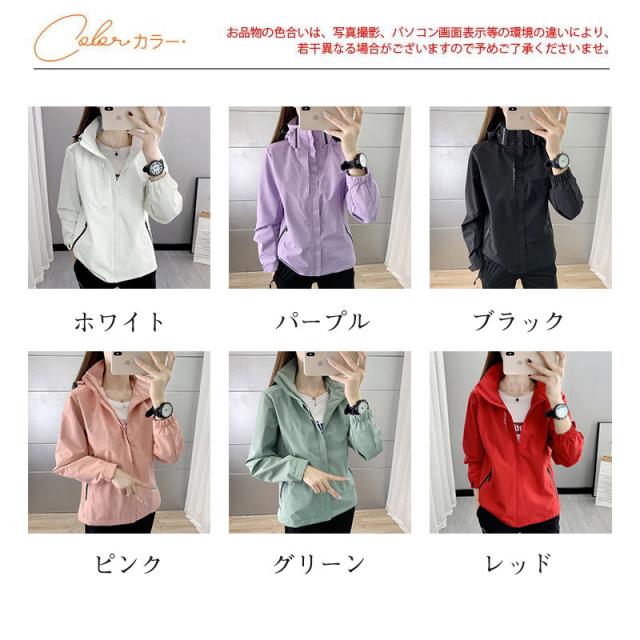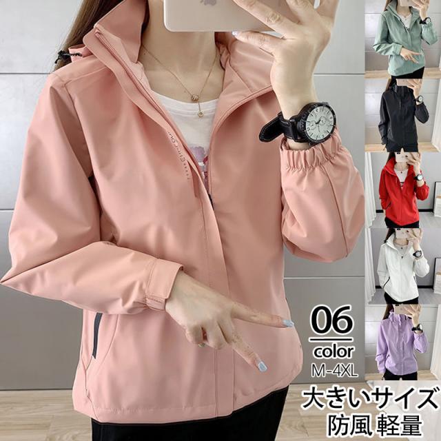 マウンテンパーカー レディース ウィンドブレーカー ブルゾン ジャケット フード付き 防風 軽量 無地 撥水加工 着痩せ 韓国 春