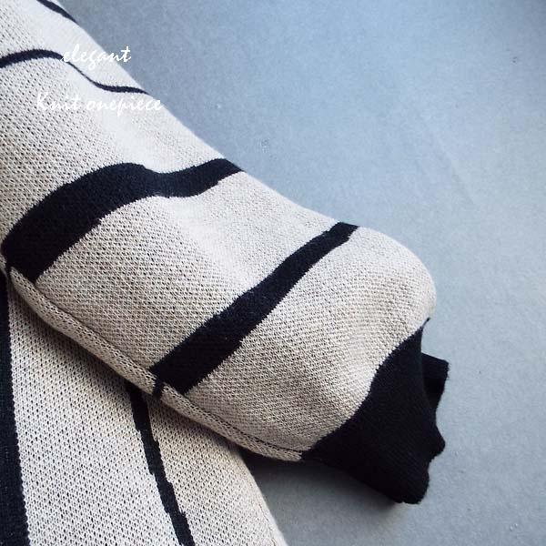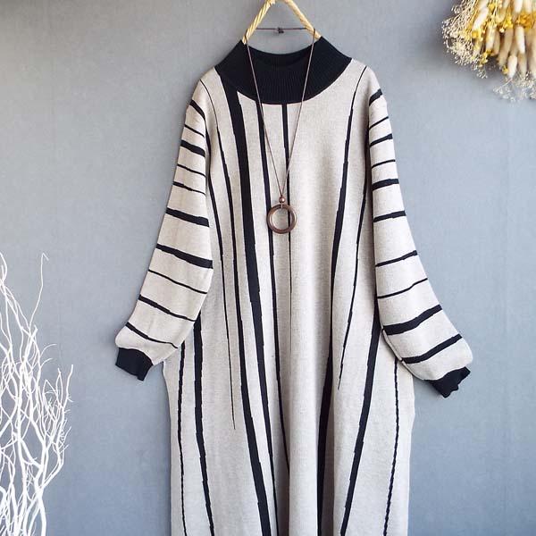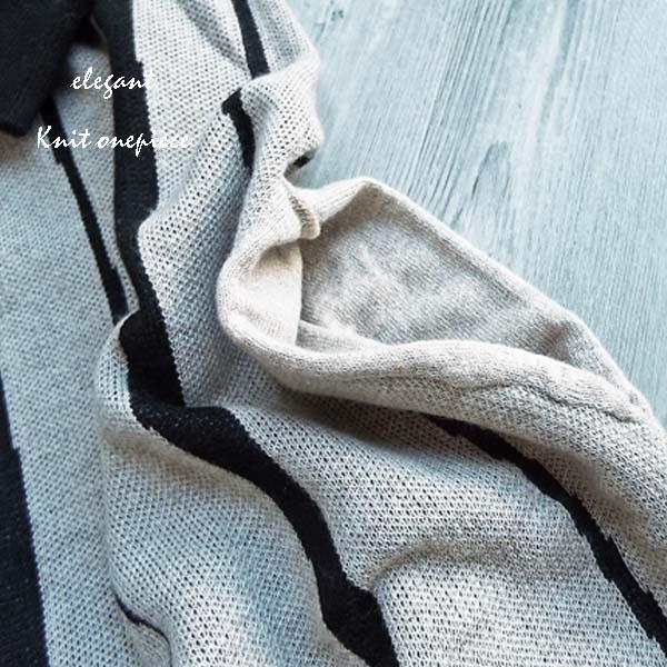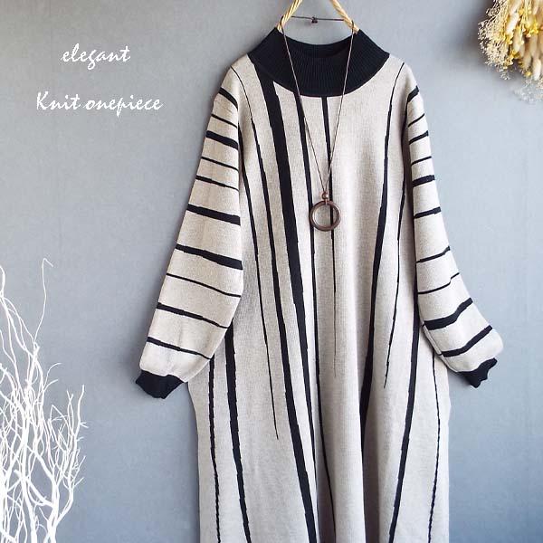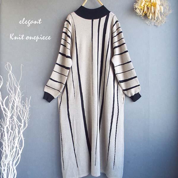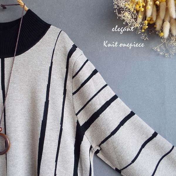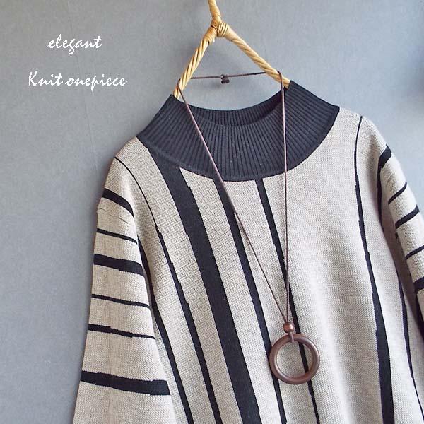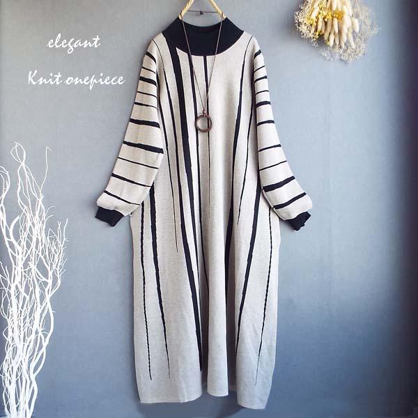 ワンピース レディース ゆったり ストライプ 配色ニット ワンピース 秋冬 40代 50代 s3511