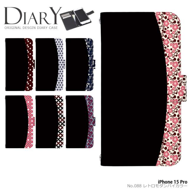 iPhone 15 Pro ケース 手帳型 iphone15pro アイフォン15 プロ アイホン15 カバー デザイン かわいい レトロモダンバイカラー