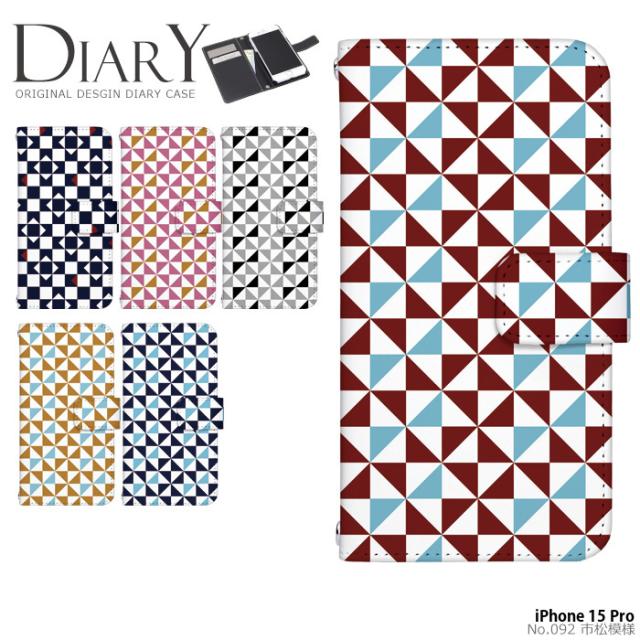 iPhone 15 Pro ケース 手帳型 iphone15pro アイフォン15 プロ アイホン15 カバー デザイン 市松模様 和 モダン レトロ
