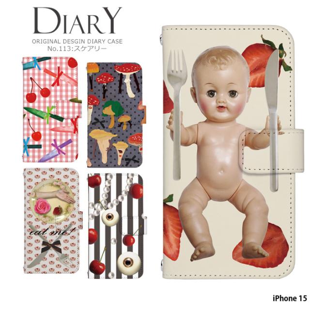 iPhone 15 ケース 手帳型 iphone15 アイフォン15 アイホン15 カバー デザイン かわいい ユニーク スケアリー