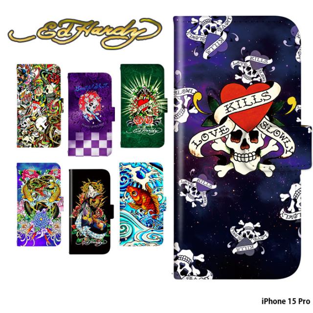 iPhone 15 Pro ケース 手帳型 iphone15pro アイフォン15 プロ アイホン15 カバー デザイン ED HARDY 正規品 エドハーディー