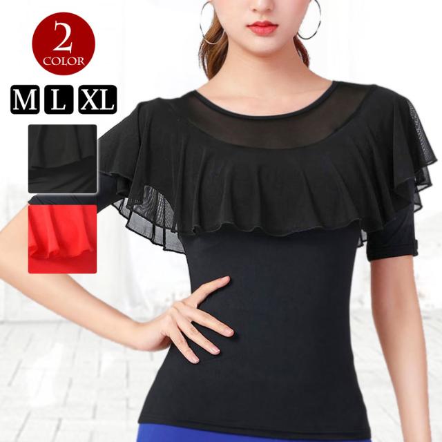 ダンス衣装 ダンストップス 胸元フリル フリルトップス 社交ダンス V36X24[M便 1/2] ベリーダンス コーラス衣装 ラテン モダンバレエ ダンスウェア レッスン着 レディース