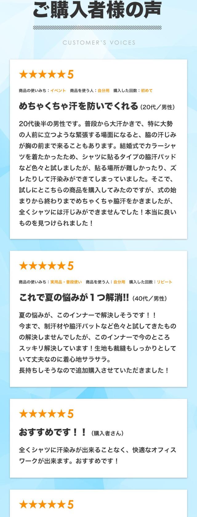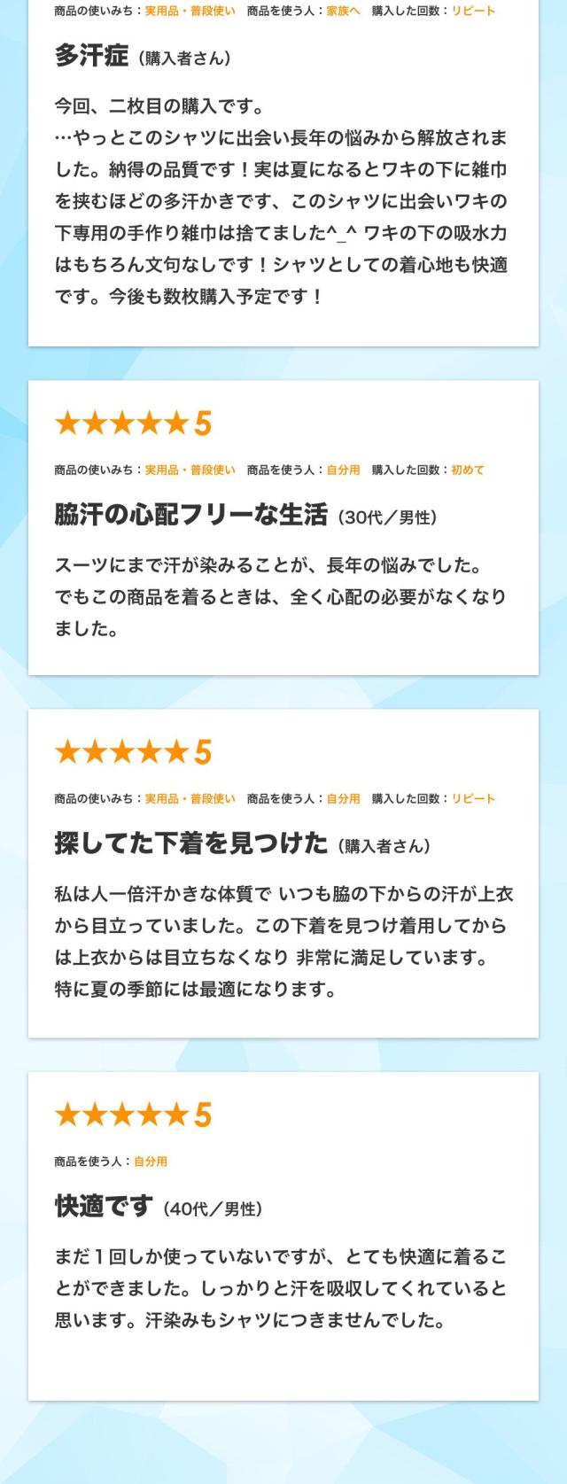 - 脇汗が半端なく、いろいろなインナーを試しましたが、この商品はしっかり汗染みをガードしてくれます。