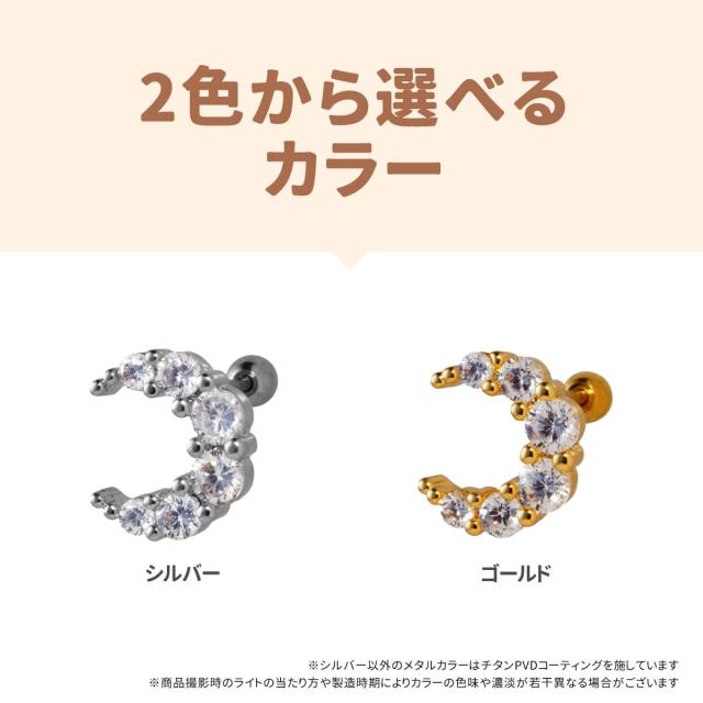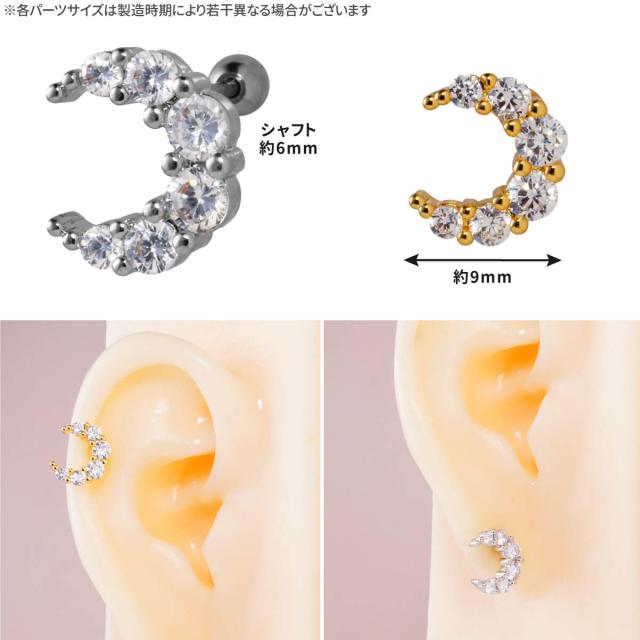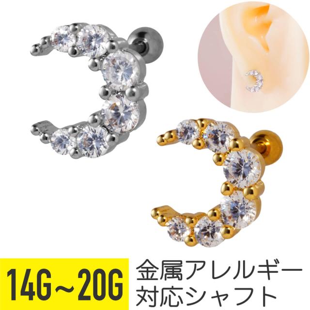 6連 ジュエル クレセント ムーン ストレートバーベル 14G 16G 18G 20G サージカルステンレス ヘリックス 軟骨ピアス ボディピアス 月