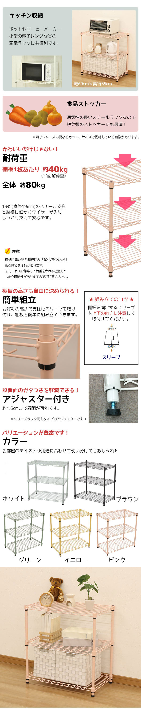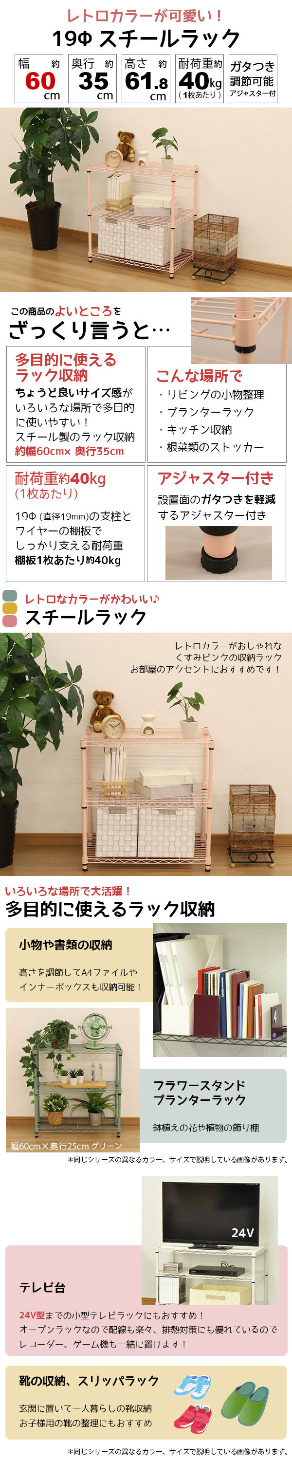 ■19φスチールラックセットNS6035-3PI(くすみピンク 桃色)の説明
