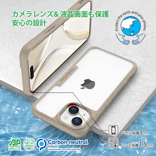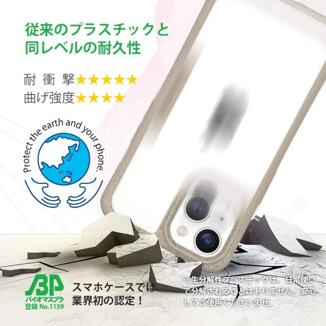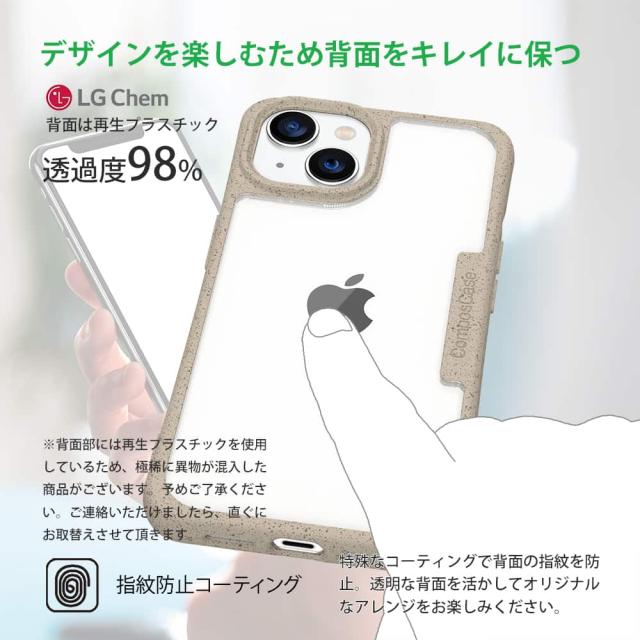 | 注意事項 | 側面部分(カラーが付いたフレーム部分)は、環境に優しい「持続性可能な生分解性プラスチック」素材で生成されております。この素材は、普通のプラスチックやTPU素材とは違い、どうしても傷が付きやすいという特性が否めません(それでも生分解性プラスチックをスマホケースの形状にするには非常に高度な技術を要します)。予めご了承くださいませ。 背面の再生プラスチックは厚さ約2mmなので、Qi充電やMagSafe充電にも対応していますが、装着していない時に比べると、若干充電速度は落ちる可能性があります。 |