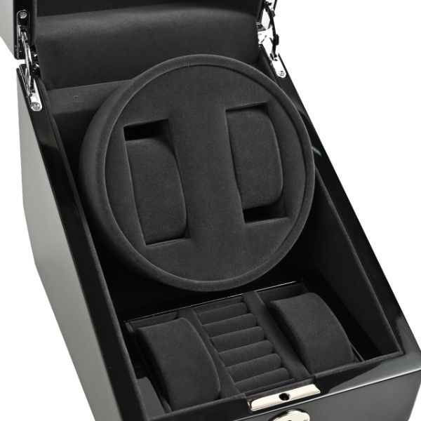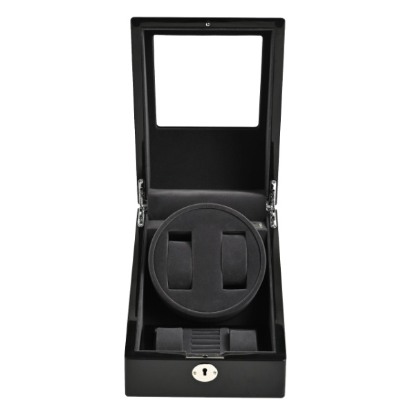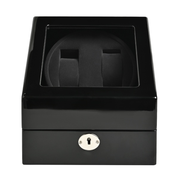 木製2連ワインディングマシーンは、静音性と優れた性能を兼ね備えた優雅なインテリアです。その美しい木製外装は、高品質なピアノブランク仕上げで仕上げられ、上質な雰囲気を醸し出します。透明な窓ガラスが備わっており、内部の腕時計が一目で確認できます。
