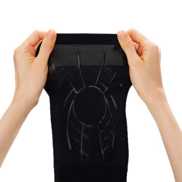 筋肉に沿ってシリコーン加工を施した膝サポーターだから、程よく膝を締め付け、歩行をサポート。