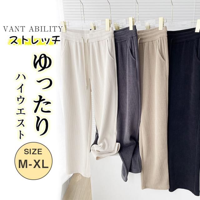 ワイドパンツ レディース 秋冬 暖い ストレッチ ストレートパンツ おしゃれ ハイウエスト 長ズボン ロングパンツ ウエスト ゴム