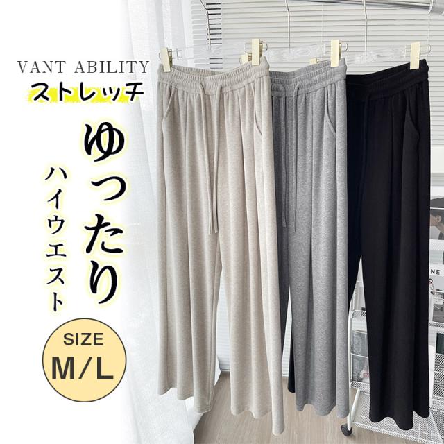 ワイドパンツ レディース 秋冬 暖い ストレッチ ストレートパンツ おしゃれ ハイウエスト 長ズボン ロングパンツ ウエスト ゴム