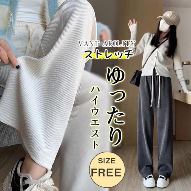 ワイドパンツ レディース 秋冬 暖い ストレッチ ストレートパンツ おしゃれ ハイウエスト 長ズボン ロングパンツ ウエスト ゴム