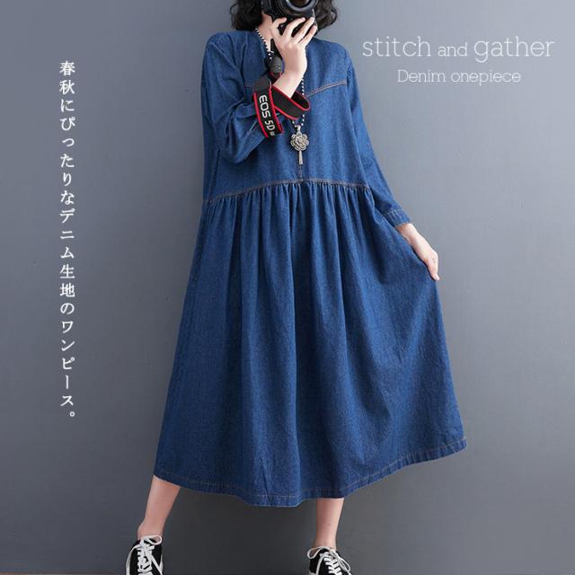 ステッチデニムワンピース