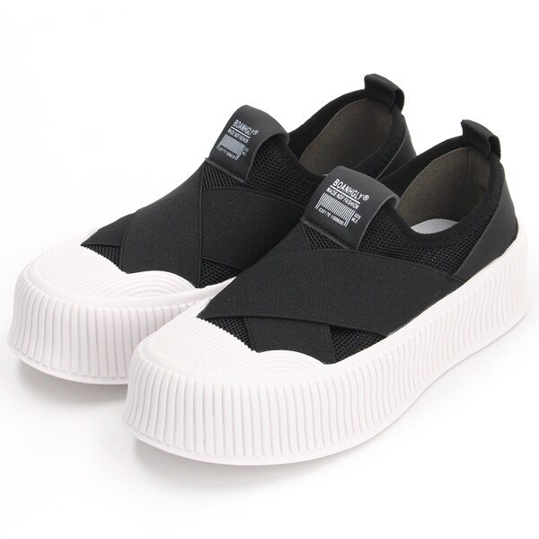 【人気】【定番】厚底☆クロスバンド レースレススリッポン