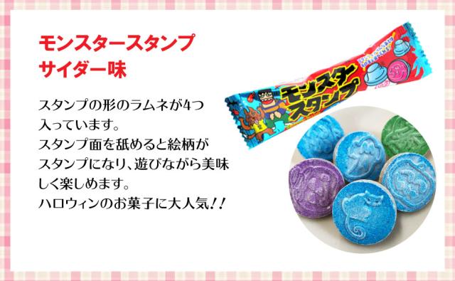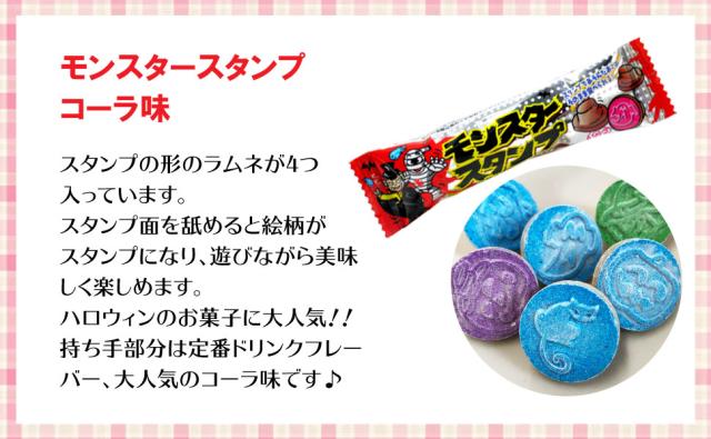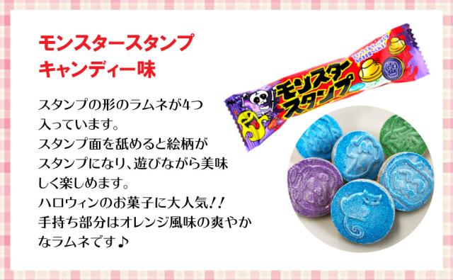やおきん モンスタースタンプ 選べる よりどり (24個) コーラ サイダー キャンディ ハロウィン らむね ラムネ菓子 お菓子 おやつ 知育菓子 駄菓子 メール便 送料無料