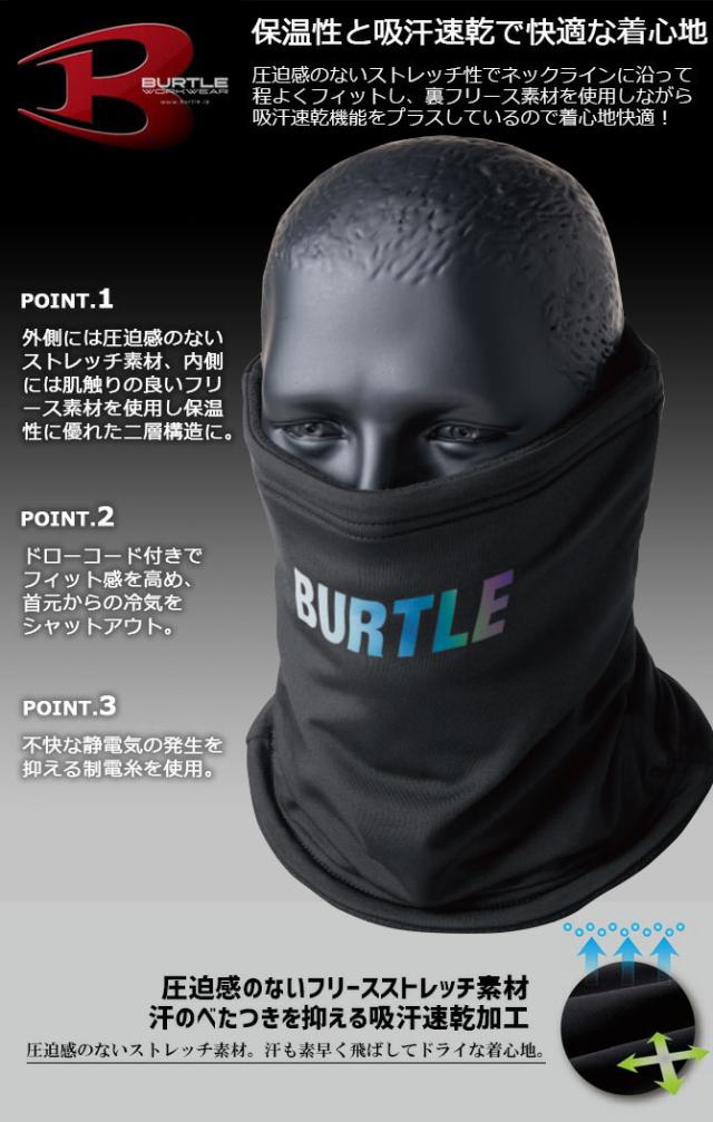 BURTLE(バートル)の冬の寒さにも負けないネックゲイターです。