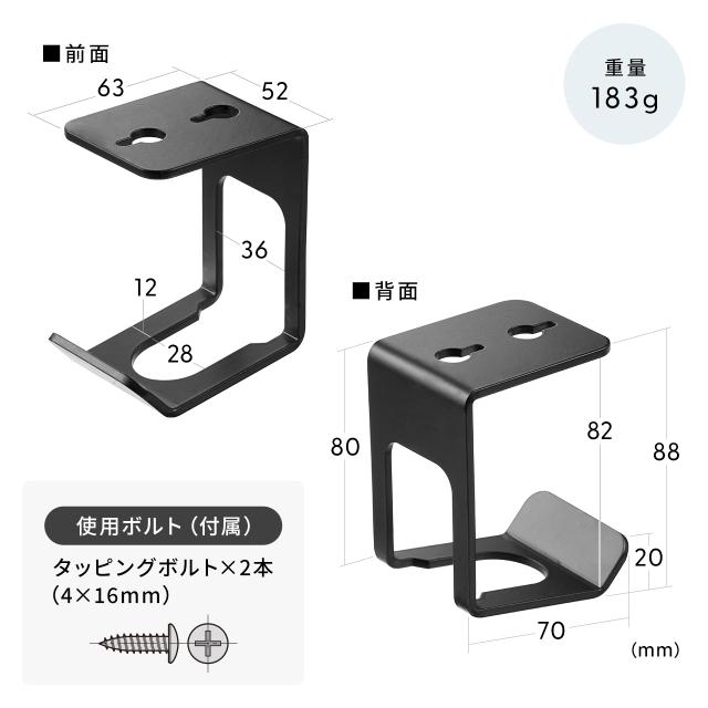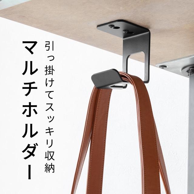 ●既存のデスクにタッピングボルトで簡単に取り付けができるマルチホルダーです。●シンプルなフックのため、イヤホン、ヘッドセット、バッグ、ケーブルなど色々な物を引っ掛けておくことができて便利です。