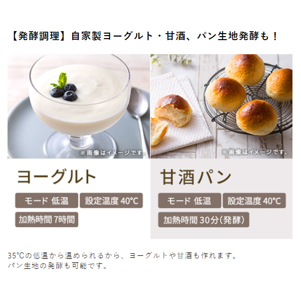 ●35℃の低温から温められるから、ヨーグルトや甘酒も作れます。