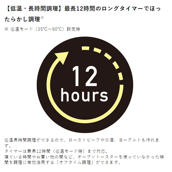 タイマーは最長12時間(低温モード時)まで対応。