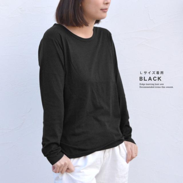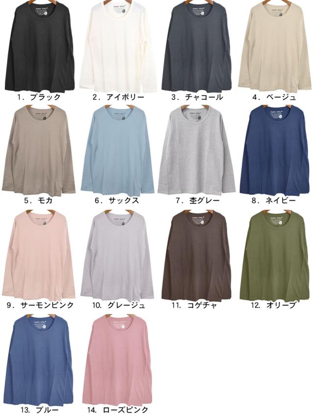 【ロンT レディース 長袖 カットソー Tシャツ 綿混 トップス 無地 シンプル ワイド ベーシック ゆったり ルーズ コットン クルーネック 体型カバー デイリー 定番 着回し 柔か すっきり くすみカラー 白 黒 ホワイト ブラック】