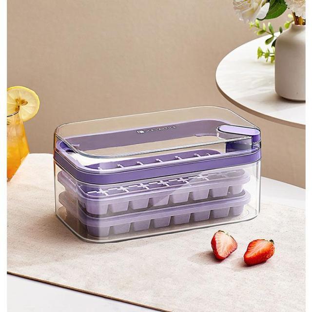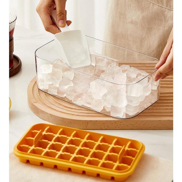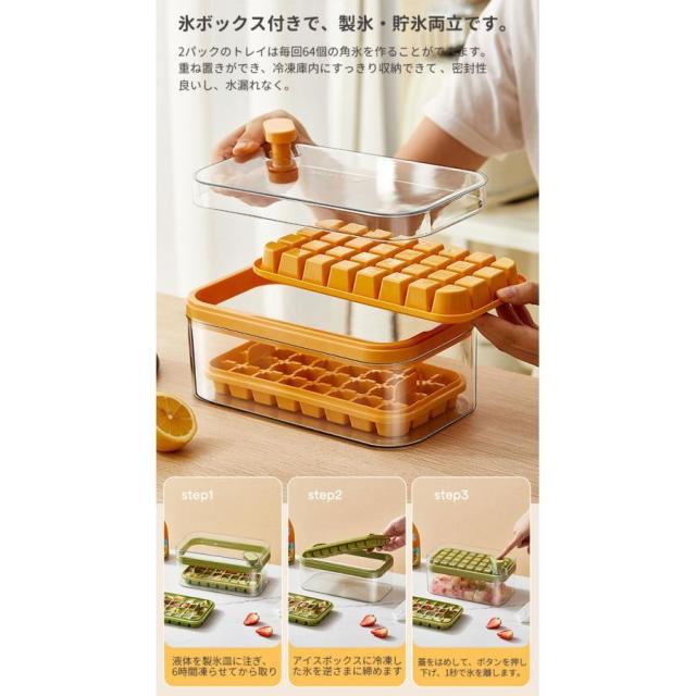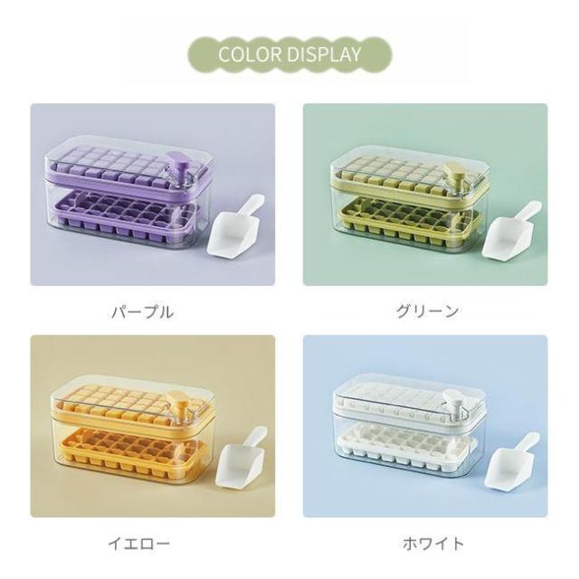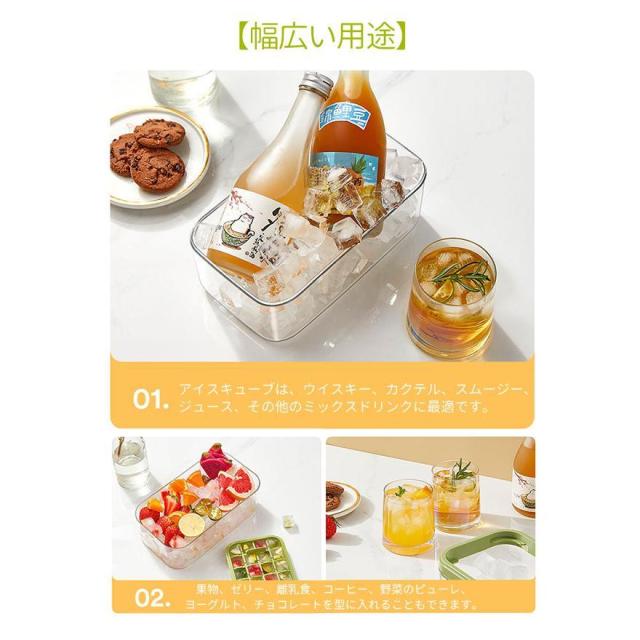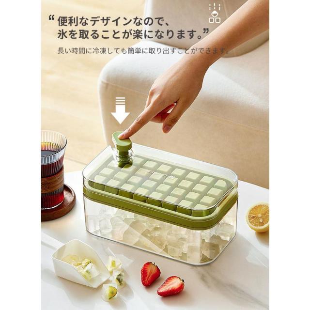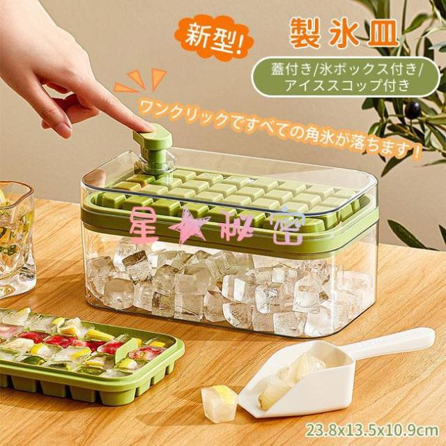 製氷皿 製氷機 氷トレー2層 蓋付 氷ボックス付き アイススコップ付き 冷凍保存 飲み物作り 耐久性 家庭用 宅飲み お酒 角氷 製氷器 氷格