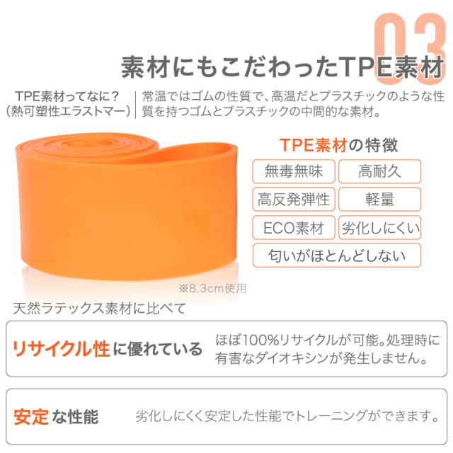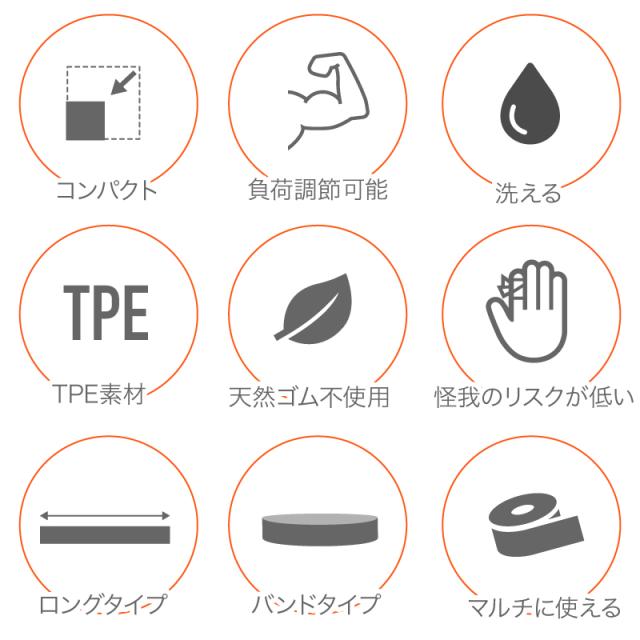 ロング バンド チューブ TPE 素材 携帯性 可搬性 耐久性 高反発性 耐熱性 耐薬性 疲労時性 安全性 高い 無毒無味 丈夫 劣化しにくい 軽量 軽い シンプル コンパクト エコ