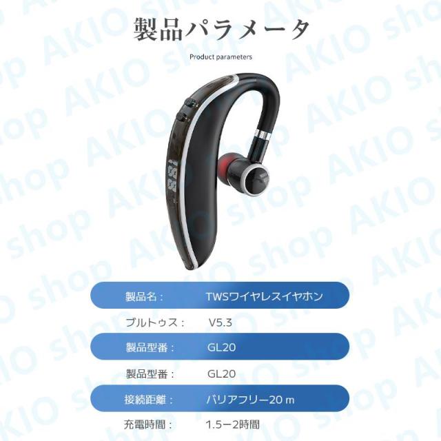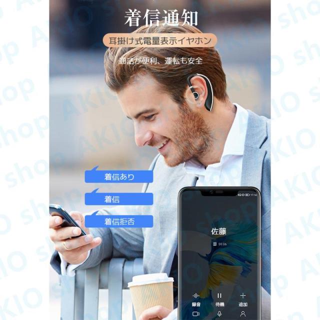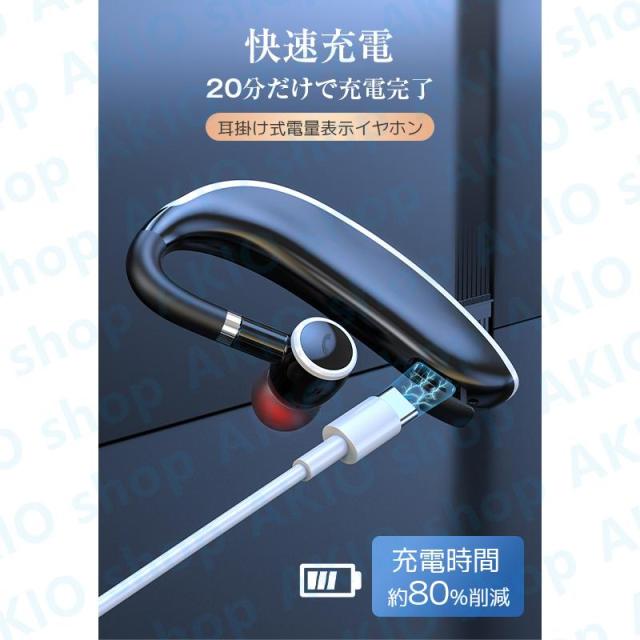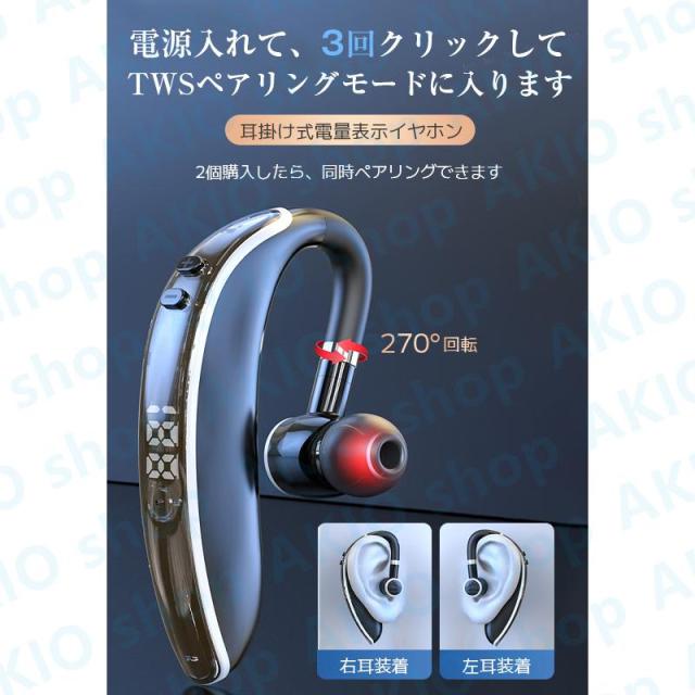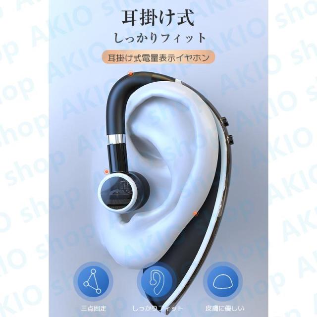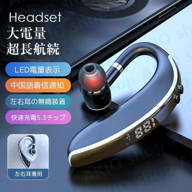 Bluetoothイヤホン Bluetooth5.3 耳掛け式 片耳 電量表示 快速充電 左右耳通用 しっかりフィット HIFI音質 着信通知 180回転 防水防汗 ノイズ低減