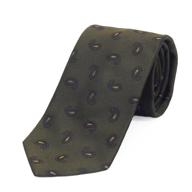国産▼高品質ネクタイ 緑系カーキ ペイズリー シルク100% 京都縫製 メール便送料無料 KY-AK14