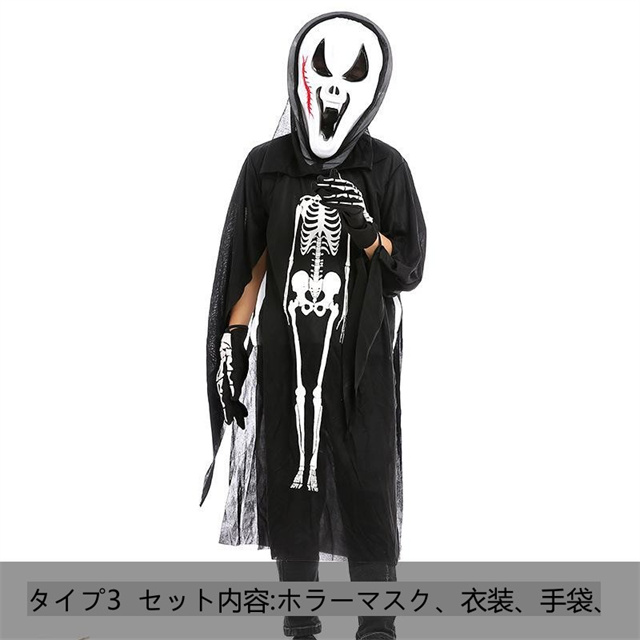 子供 ハロウィン スクリーム 死神 3点セット コスチューム 男の子 女の子共用 仮装 演出服 子供 ハロウィン 仮装 送料無料