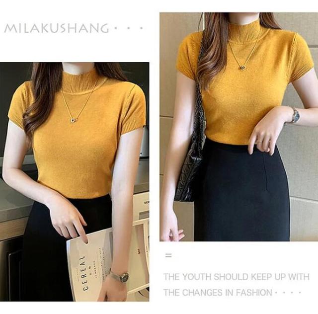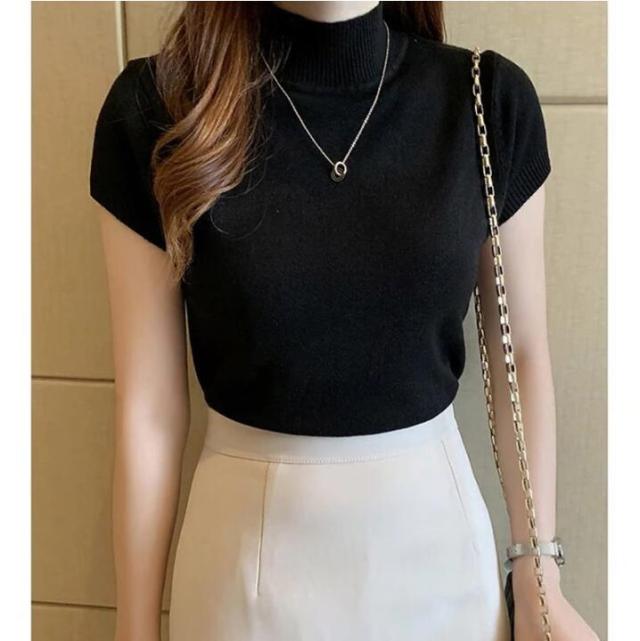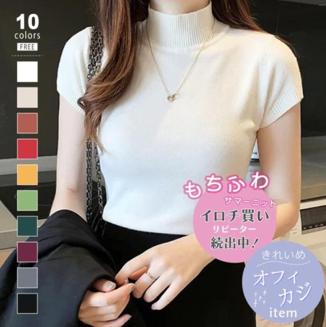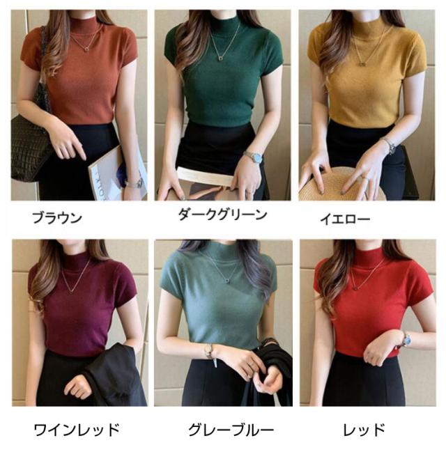 ニット トップス サマーニット レディース セーター 半袖ニット 無地 タートルネックトップス おしゃれ オフィスカジュアル 半袖 普段着 お出かけ着 プチプラ 韓国風 韓国ファッション 20代 30代 40代 50代 ファッション