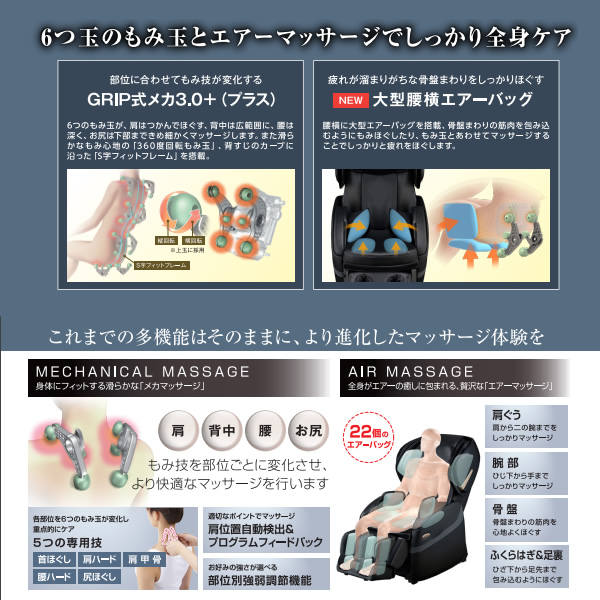 部位に合わせてもみ技が変化する「GRIP式メカ3.0+(プラス)」