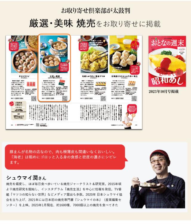 国産豚肉と玉ねぎを生かし、味付けを最小限にした「しゅうまい 」 は、 肉 感むぎゅっ。かぶりつくと旨みと甘みが押し寄せる。「海老」はすり身と粗く刻んだものを配合し、プリプリ食感とともに豊かな風味が炸裂 ! いずれも王道をゆく実直な旨さだ。