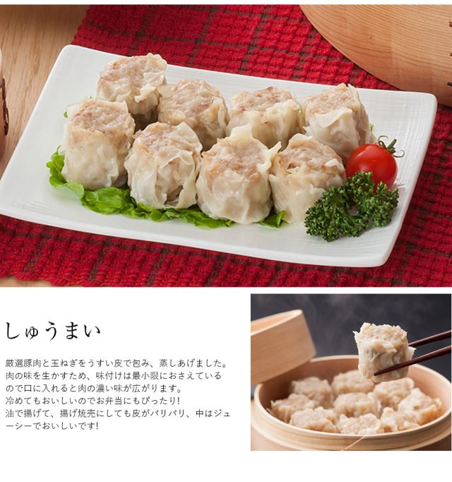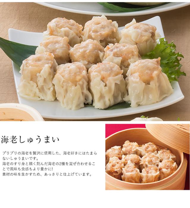 【海老しゅうまい】海老(中国産)、豚肉、背脂、小麦粉、ネギ油(鶏を含む)、グラニュー糖、片栗粉、練りごま、しいたけ、醤油(大豆を含む)/酒精、甘味料(ソルビット)、加工デンプン、調味料(アミノ酸等)