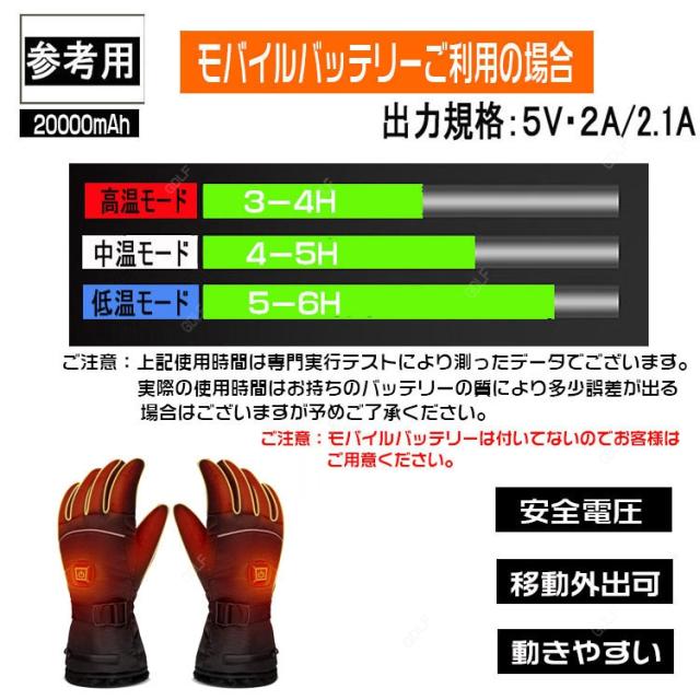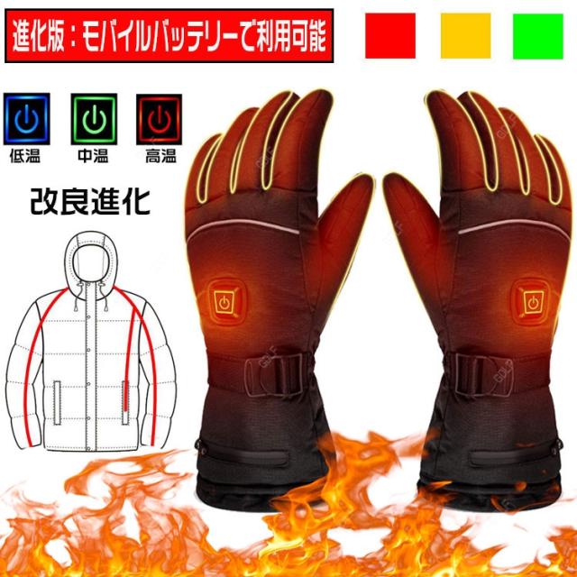 電熱グローブ 電熱手袋 ヒーターグローブ バイクグローブ モバイルバッテリー加熱手袋
