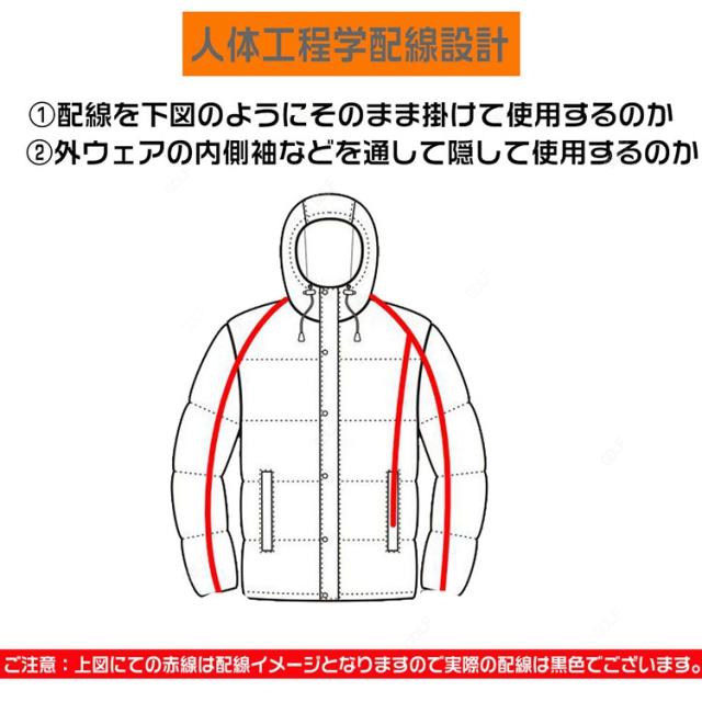 ?特製の配線は外ウェアの内側袖から通して目立つことなくて使用することも可能です。