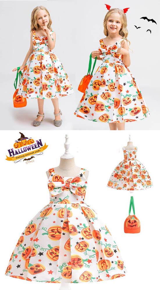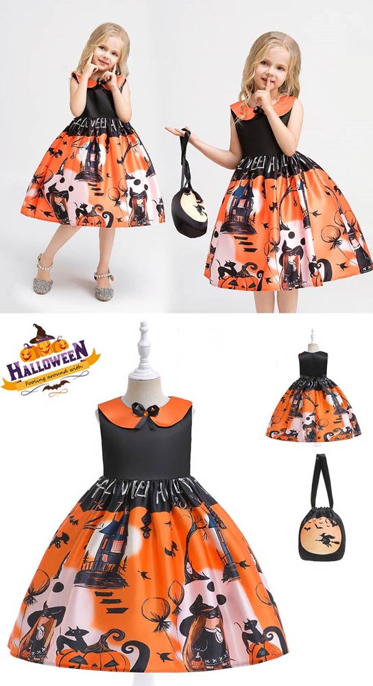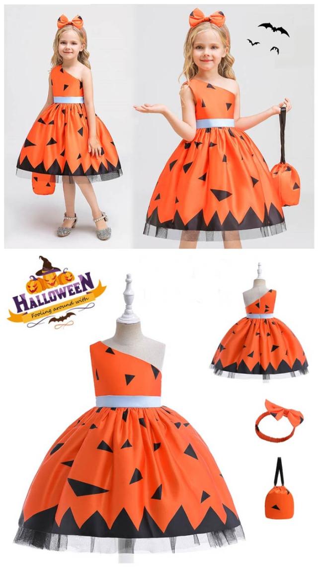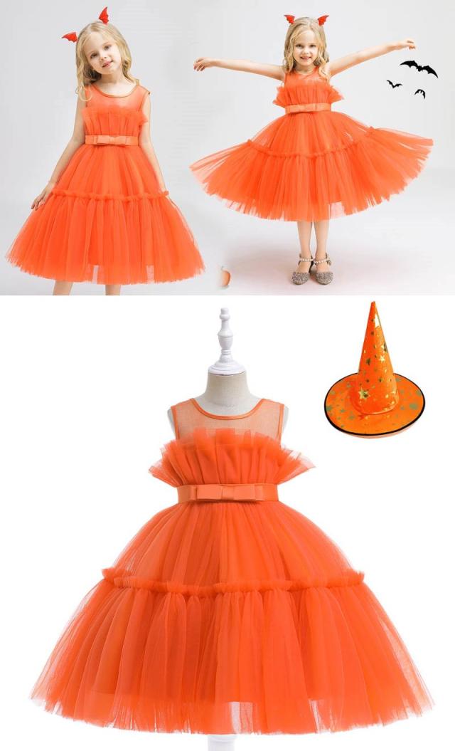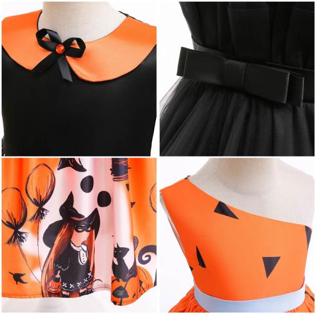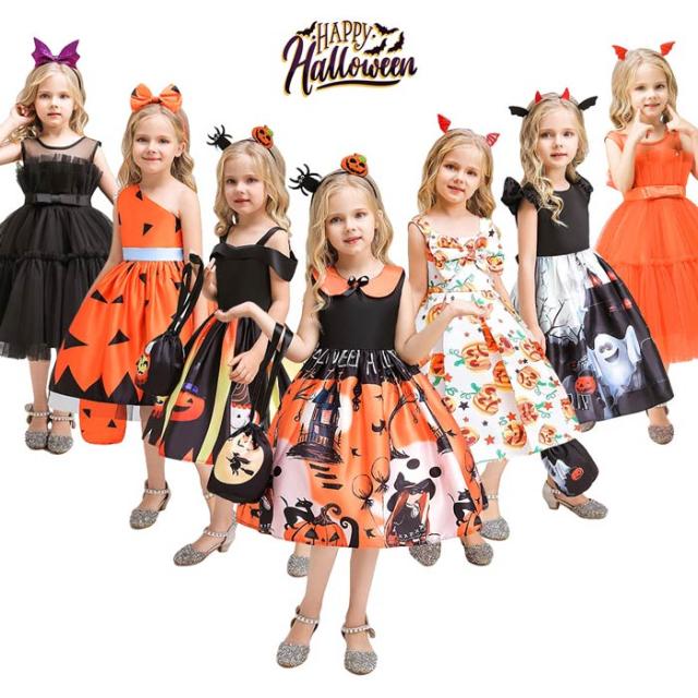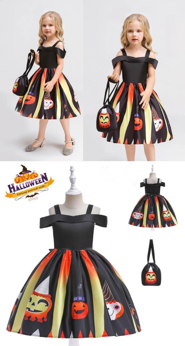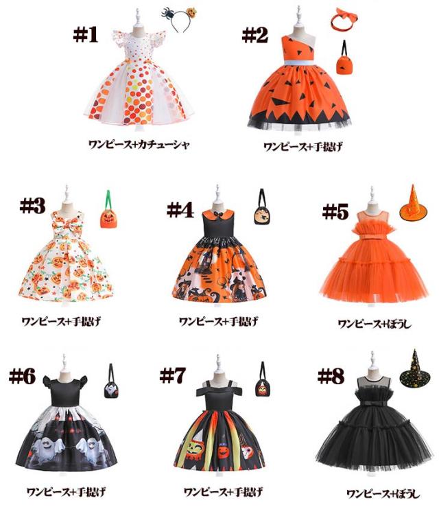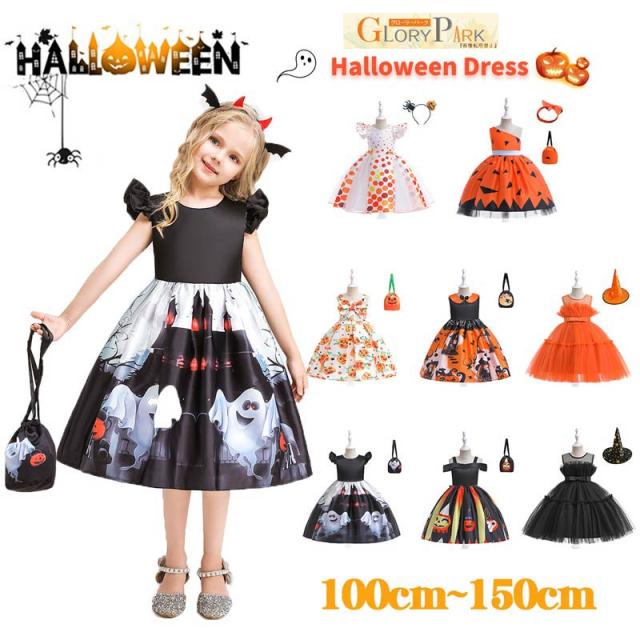 ハロウィン衣装 子供 子供ドレス ハロウィン コスプレ 可愛い コスチューム ワンピース コスプレ衣装 ドレス 120cm ハロウィン 女の子 2点セット カボチャ 魔女 100cm 110cm 130cm 140cm 150cm be308c0