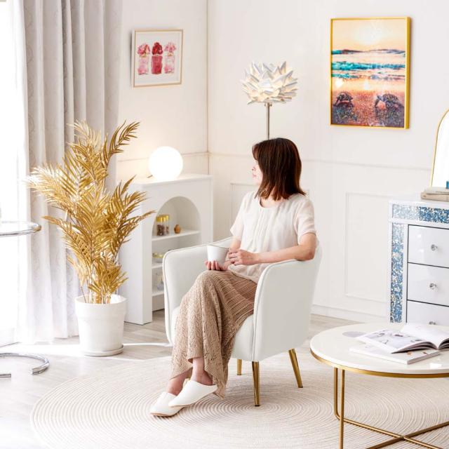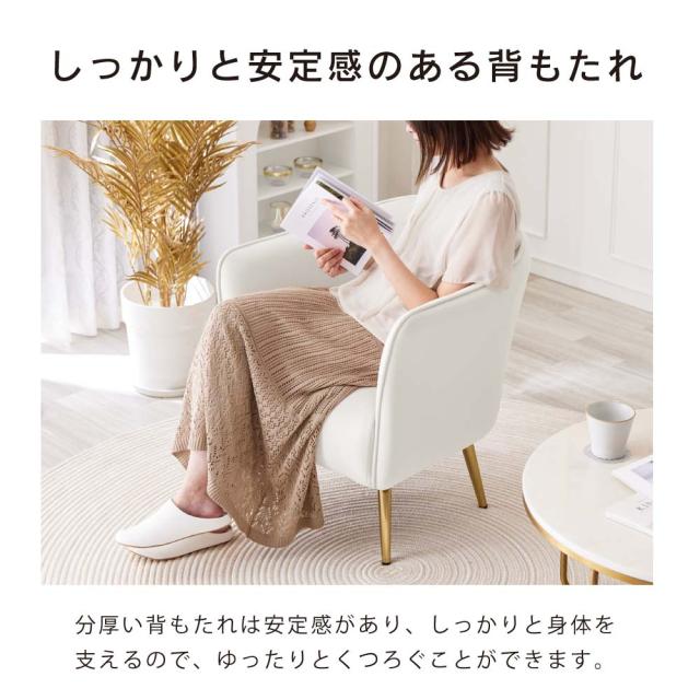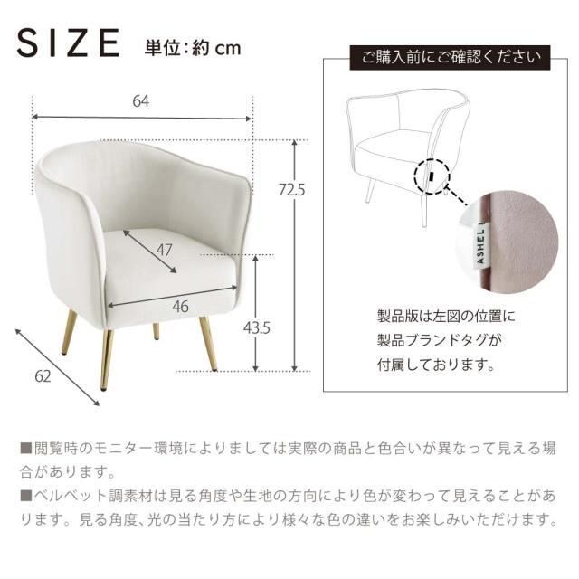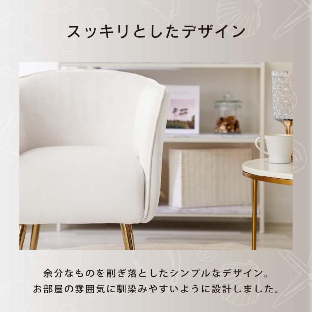 ソファ 一人掛け ASHEL lillia TN-CH10 ダイニングチェア 一人用 ソファー 1人掛け 一人掛けソファ デスクチェア キャスターなし 椅子 肘付き ベロア調 おしゃれ 白 ホワイト くすみカラー 韓国 インテリア イス 子供 北欧 疲れない 金脚 アシェル リリア ゆったり 高見え