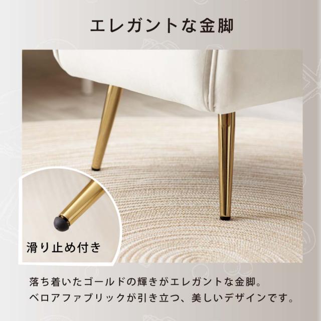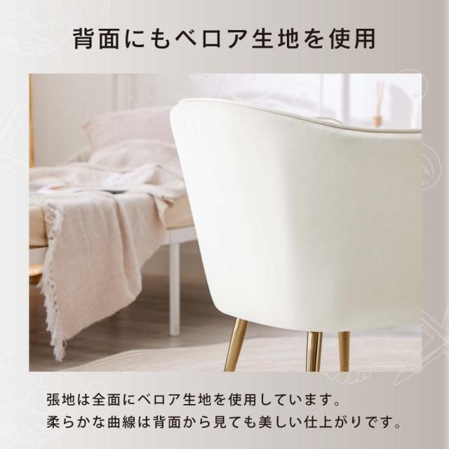 ■商品説明:人気のくすみカラーが大人かわいい金脚(ゴールド脚)ソファチェアです。ダイニングチェアだけでなく、デスクチェア、メイク用チェアとしてもおすすめです。独特の曲線が体にフィットして疲れにくい。ベロア生地で肌触りもよく、女性に人気のデザイン。サロンや飲食店など、法人の方・ショップ用としてもご好評です。