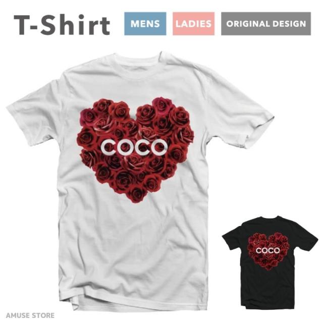 Tシャツ メンズ 半袖 おしゃれ プリント ブラック ホワイト グレー coco ハート hearT 花柄
